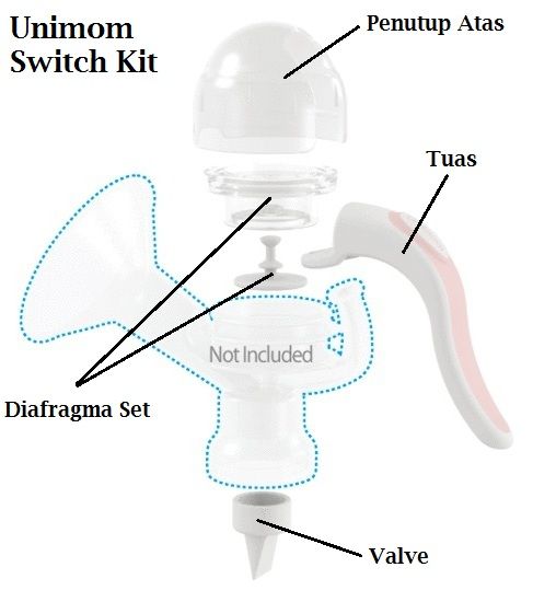 Paketan pembelian disertakan konverter manual kit yang artinya anda bisa menggunakan pompa ASI ini sebagai pompa ASI elektrik maupun manual.